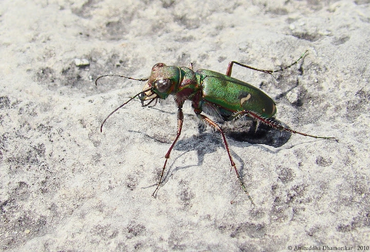I tried to document as many tiger beetles as I could besides other insects (such as butterflies that I discussed in the previous post), herptiles, birds and mammals. And out of these, most challenging were obviously the Tiger Beetles. You know the reason why, but I had quite an idea of how to get close enough for a photograph through countless tries. I am talking about photographing Tiger Beetles using a Point-and-shoot (PNS) camera with no high-end super-macro lenses. Using a PNS strips the photographer of the privileges of shooting the subject from a distance, which is practically possible but the result is photographically insufficient. In order to obtain that near-perfect shot for any PNS, the photographer has to be as close as possible, but not too close to scare the subject.