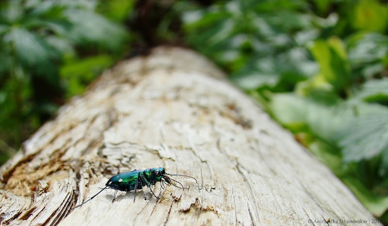 Patience is virtue, but if there is an insect that knows how to test your patience, it has to be a Tiger Beetle. Belonging to the order Coleoptera, family Carabidae , subfamily Cicindelinae (all Tiger Beetles belong to Carabidae, but not all Carabidae beetles are commonly called Tiger Beetles; they were previously considered to be under a distinct family Cicindelidae), these beetles are commonly referred to as Tiger Beetles for a very good reason. We all know that tigers are carnivores, earning the rightful throne of being on top of the food pyramid in their prime habitats. Their hunting tactics involve ambushing, stalking, chasing and surprising the prey, making them efficient – if not supreme – predators of the Indian subcontinent. Likewise, Tiger Beetles are known to use all these tactics while hunting for food. Only difference between the mammalian tiger and an insect tiger is their apparent size, but if we were to blow a Tiger Beetle to the proportion of a tiger, the Tiger Beetle would be a far supreme predator to rule the planet. The reason behind their success is because they are one of the fastest insects, capable of running as well as flying at great speeds (20 to 30 mph!). But worry not, a tiger beetle will never run you down, it will, in fact, make you chase after it, if you are curious about these marvelous beetles flaunting an extravagant armor of Chitin. This post is about my field observations of the Tiger Beetles of southern Ontario, as I stalked and chased for hours to photograph them over the summer.