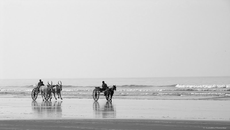 At the beach, a gathering was underway as bullock-carts after bullock-carts rolled into the white shoreline: