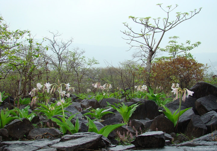 As we scampered our way up, with our feet placed carefully in the crevasses’, we found a paradise that is, quite unsurprisingly, well known to the tribal people of this region: a paradise full of Crinum lilies – plants praising the arrival of monsoon with utmost respect and regard – plants bowing gently, yet displaying their vigour and gladness with brilliant colours and subtle fragrance.