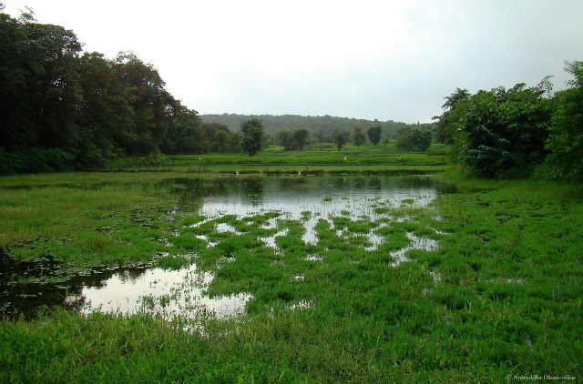The morning carried a pleasant breeze from the sea, the scent of which is peculiar only to the Konkan region. The sun glanced through a fissure in an otherwise uniform grey cloak of nimbostratus covering the eastern sky. I found myself standing in front of piling fields of bowing rice heavy with raindrops.
