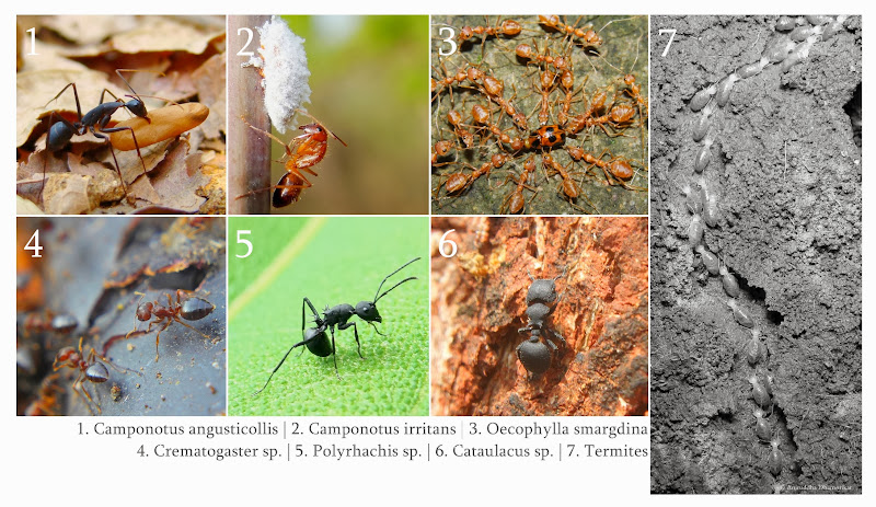 | The most common resident ants and termites of Konkan, with 1, 2, and 7 preferring to nest on the ground,, and 3, 4, 5, and 6 preferring to nest on trees. |