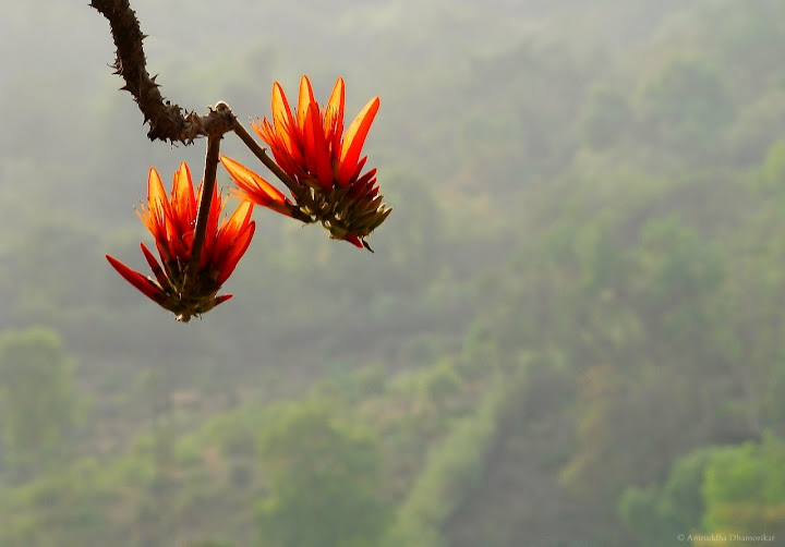 for their aesthetic values.| Erythrina indica adorns its coral flowers along the edge of the sacred grove of Supegaon village |