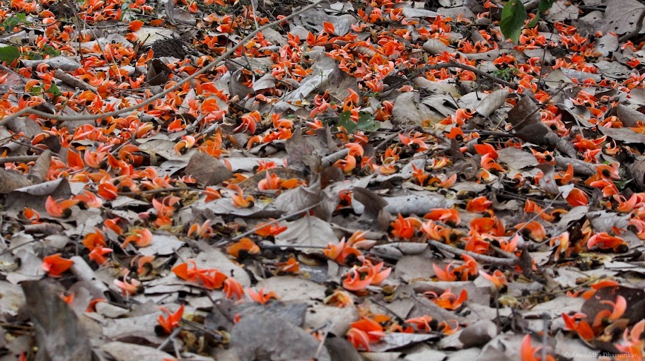 | A carpet of Palash flowers under the tree |