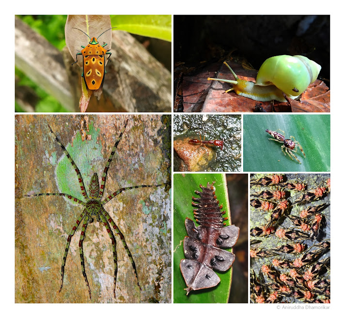 | The giant arthropods (clockwise from top left): Giant forest ant, giant millipede, and the giant forest termites |