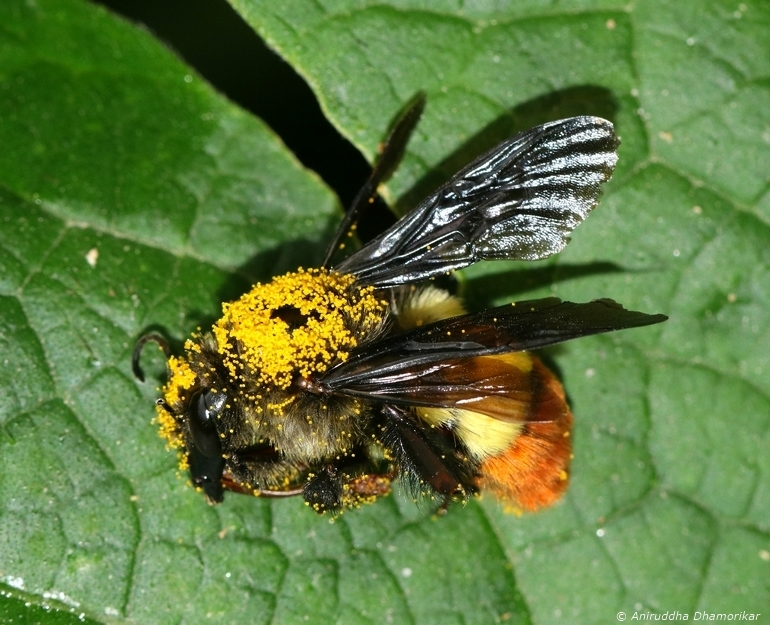 | A very dead Blood-tipped Bumblebee dabbled in squash pollen. |