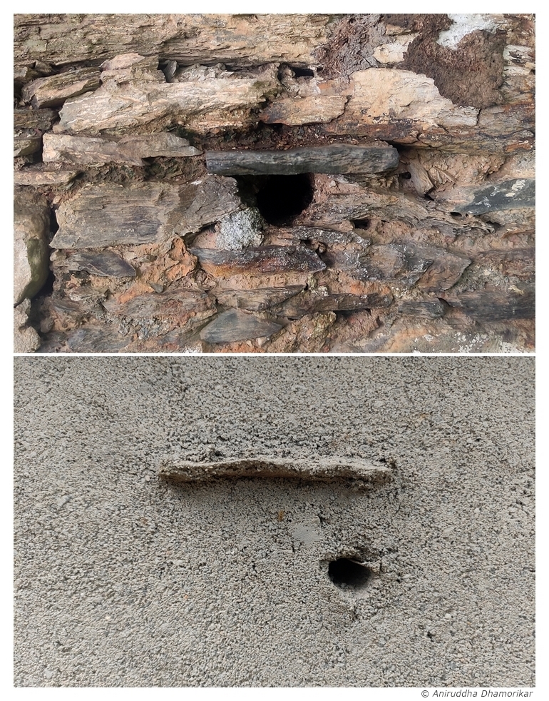 | Bees being busy in one of their houses, with a roof providing shade from the direct sunlight one hot monsoon day. |