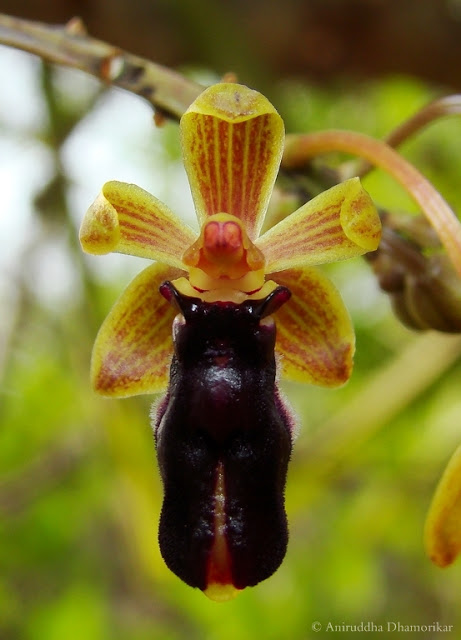 A lone Owlfly fluttered as we were photographing Orchids. Although they are more common during Monsoon, seeing one at this time of the year is a new record for me. The larvae look similar to Antlions. I haven’t come across any articles regarding the life-history of Owlflies in India, which will be really interesting to study. The larvae and adults both are predatory, perhaps also feeding on agricultural pest insects, therefore their importance to us is valuable, but there seems to be a serious lack of knowledge about this interesting insect in India.