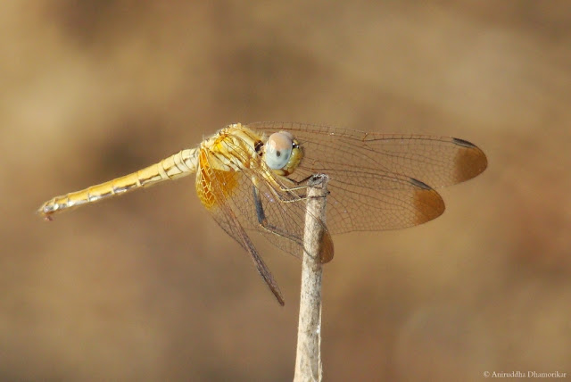 The dragonflies were common as well – and surprisingly we could see only females. I’m not sure why this is the case, and it’ll be interesting to look at this from a scientific perspective. We sighted a Darner as it quickly zoomed into the opposite direction. More cooperative, as always, were the Libellulids – the Skimmers. I photographed this pretty Trithemis aurora lady for the first time as she sat patiently in the dried thickets.