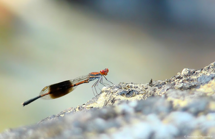 The Odonates were also equally common. I saw more and more of Damselflies by the end of September and in October than in the peak monsoon months. One of my favorite is a Black-winged Bambootail: