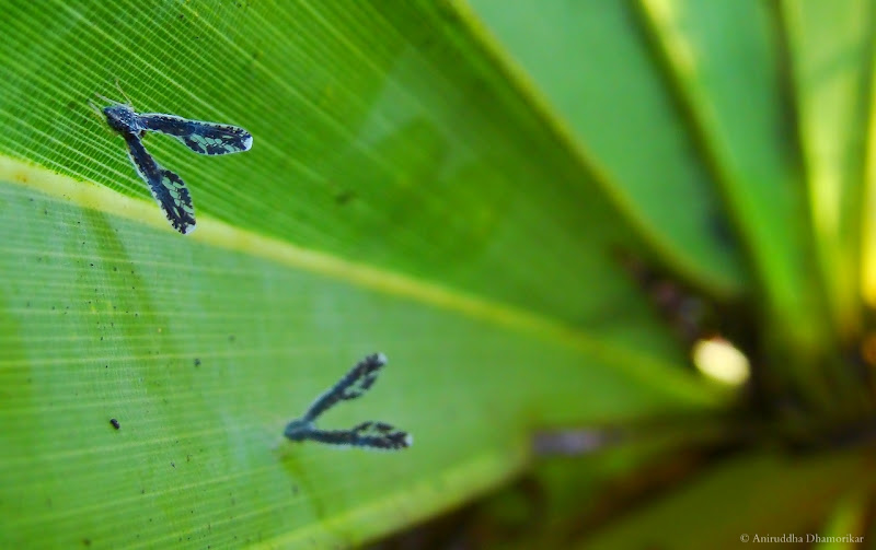 These Derbid hoppers are almost always found on palm trees. I had seen them four years ago at a different location, so seeing them on my visit to Vasai Fort after four years was quite exciting. I also made sure to check out the flies, amongst which my eyes quickly fell on the tiny flies in the family Sepsidae, as well as spiders such as Leucauge decorata, Nephila, Oxyopes, Cyclosa and a male Telemonia sp. Two lone Praying Mantis nymphs, a few yards apart, were seen lurking in the bushes: