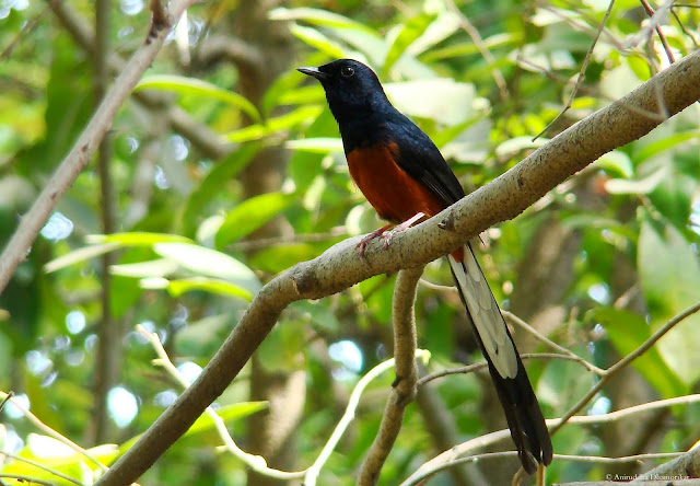 And sat under the shade of the giant Mangifera indica (Mango) and Syzgium cumini (Jambul), where we heard a bird noted for its beautiful call – the White-rumped Shama.