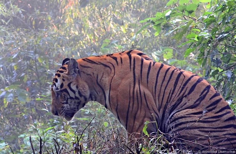 A subadult tiger hiding (not ambushing!) from visitors. Success of tiger conservation is as much a people's success as it is of the laws and policies that govern claim to this success. |